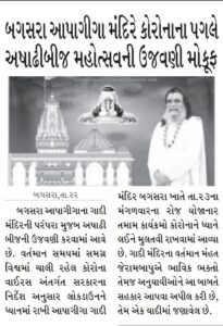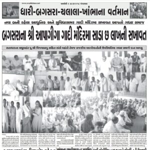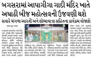 બગસરામાં પૂ.શ્રી આપાગીગા ગાદી મંદિરમાં અષાઢી બીજ મહોત્સવની ભવ્ય ઉજવણી અહીની સુપ્રસિધ્ધ પૂ. શ્રી આપાગીગાના ગાદી મંદિરની પ્રાચીન પરંપરા અનુસાર સંતોએ પ્રસ્થાપિત